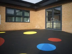 Pelton Primary School wanted to make their inner courtyard area an attractive, low maintenance space to conduct outdoor activities and lessons. Working closely together we created an eye catching, colourful design using both black and colour.